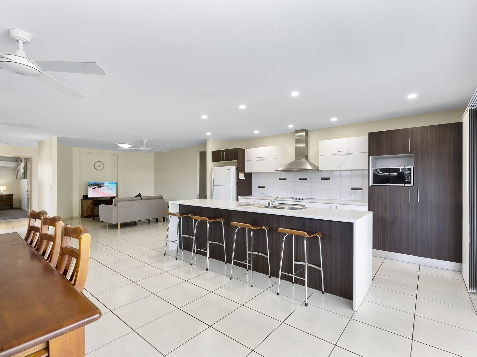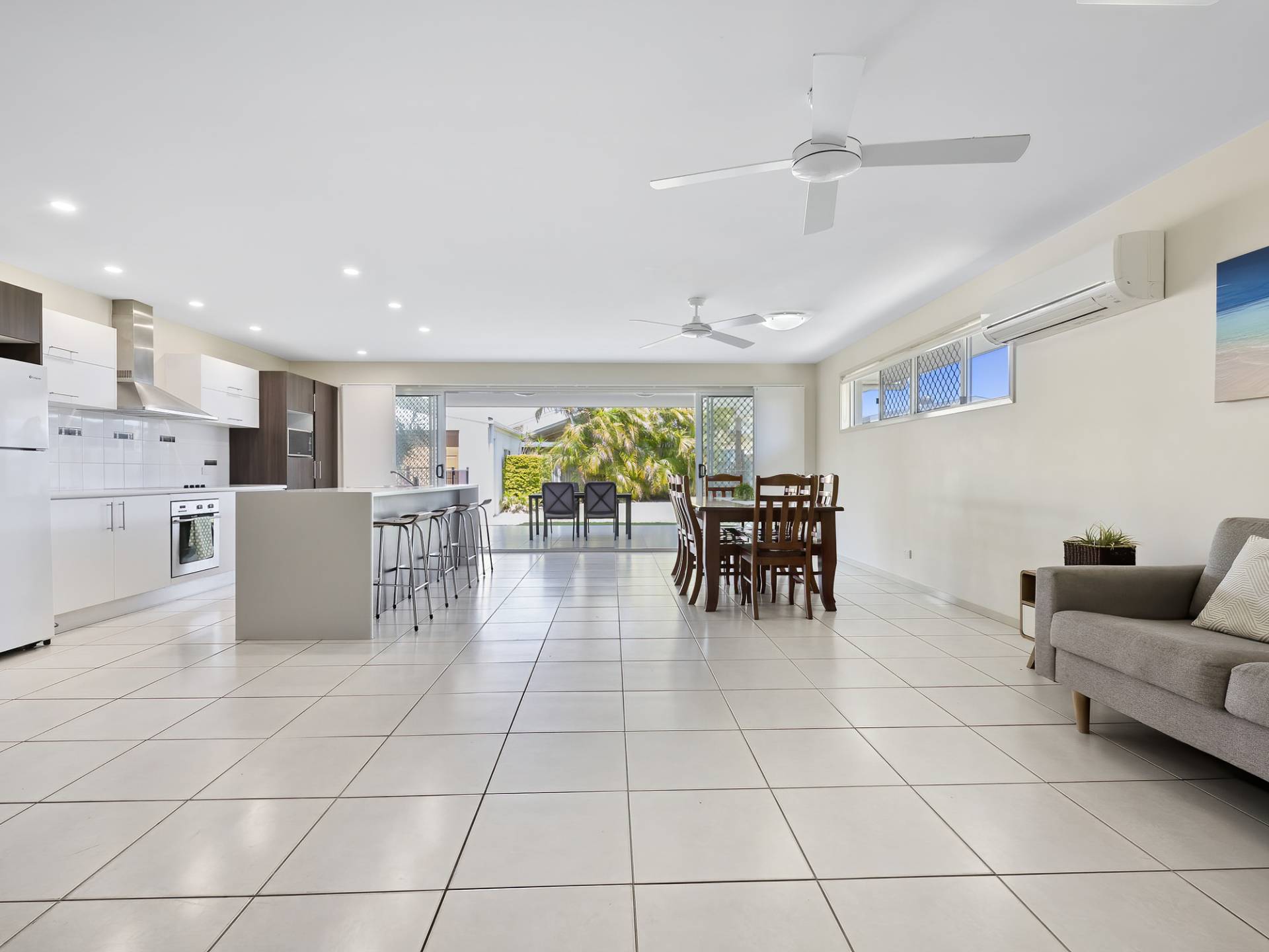 The kitchen is modern, has ample cupboard and bench space and has easy access to the outdoor area when entertaining.