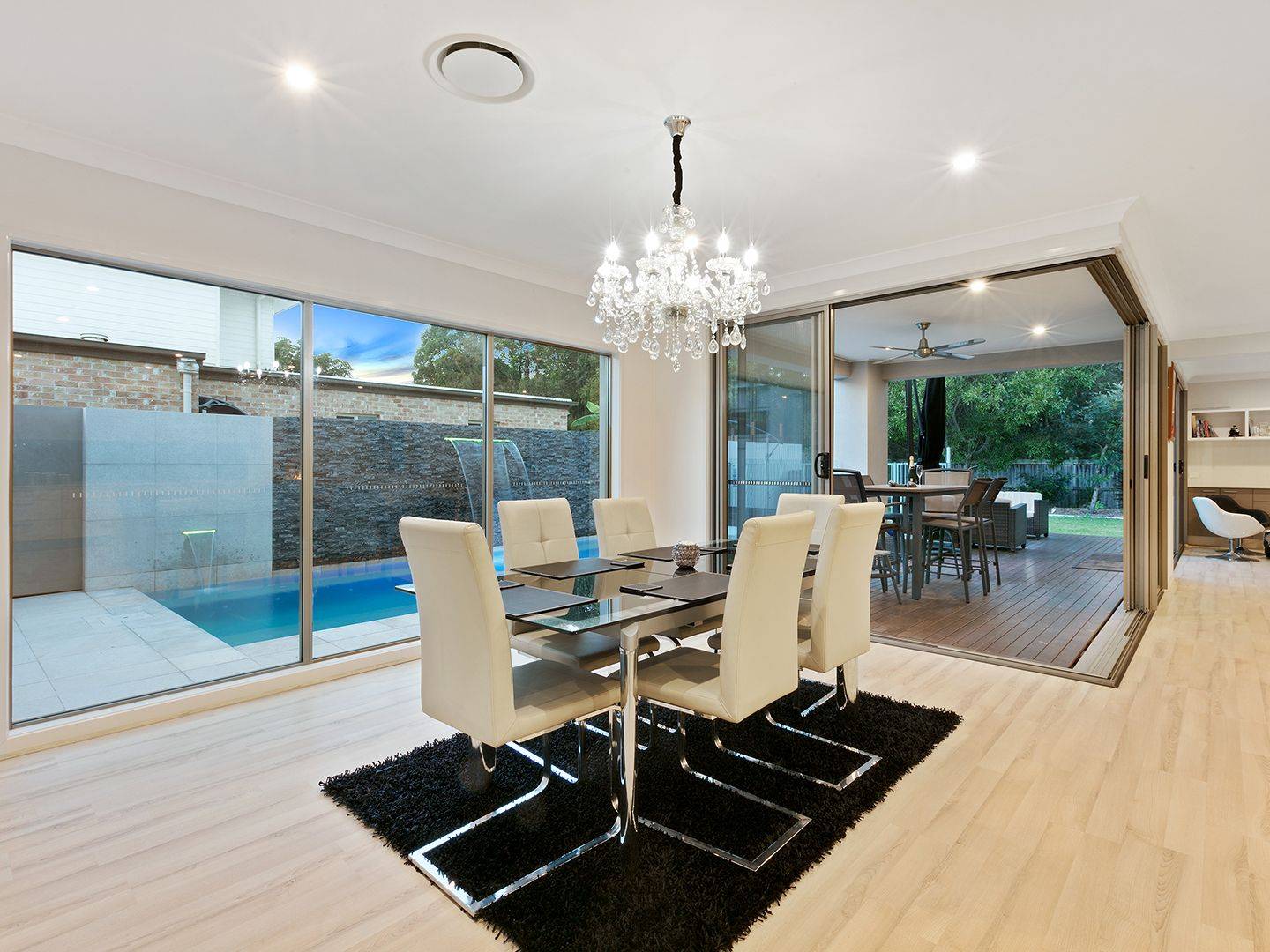 The gourmet kitchen is equally impressive and is finished with premium luxury appliances, (including rotisserie oven), waterfall stone benchtops and Butlers Kitchen. The elegant dining room overlooks the pool separated by a wall of glass and is the perfect place to entertain.