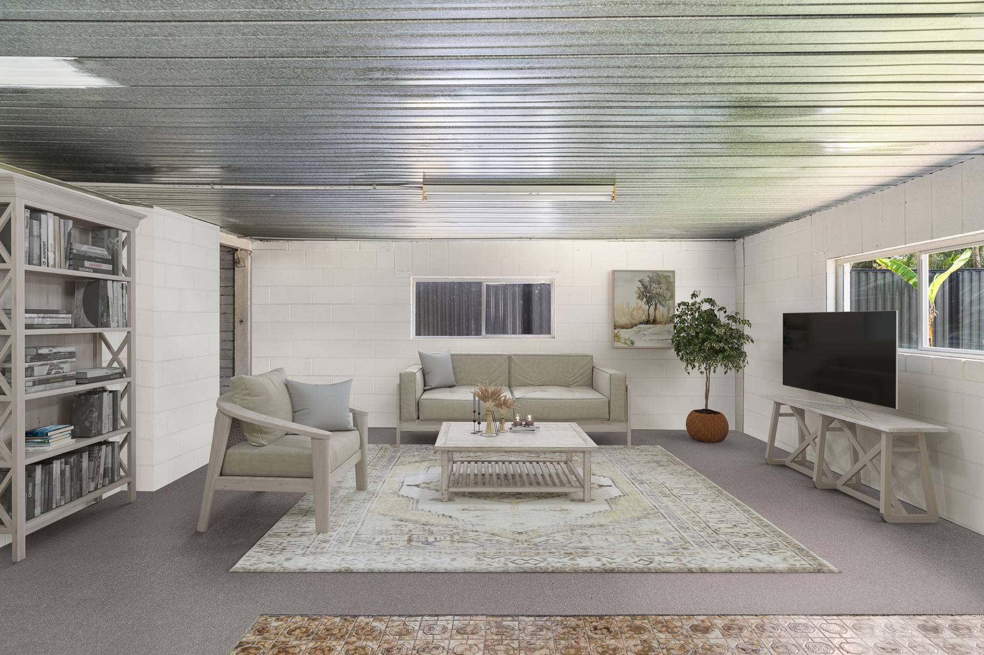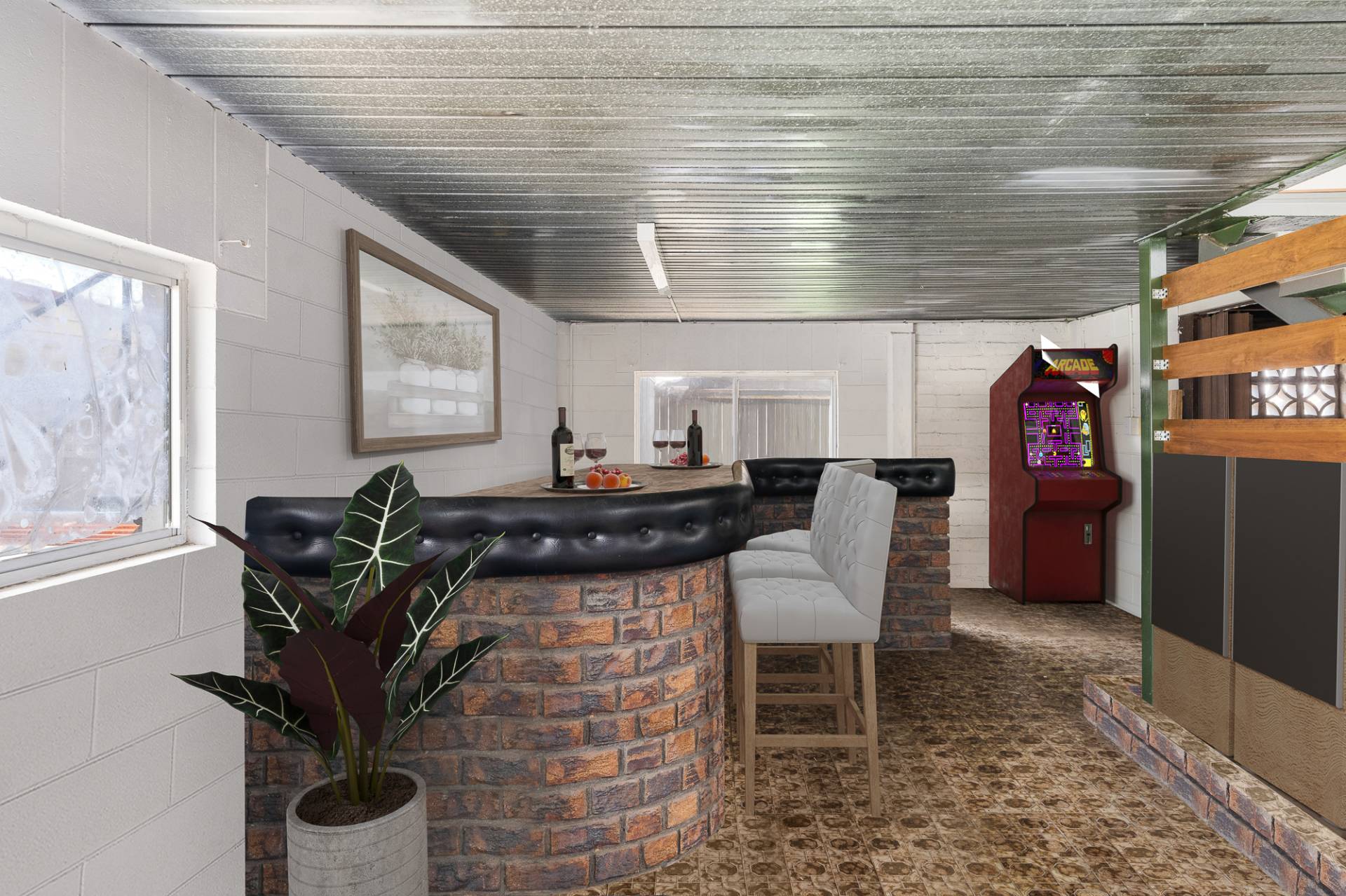 Downstairs has a basic second bathroom with toilet vanity & shower, perfect for the workshop dad and an absolute mountain of space- the options are near endless.
