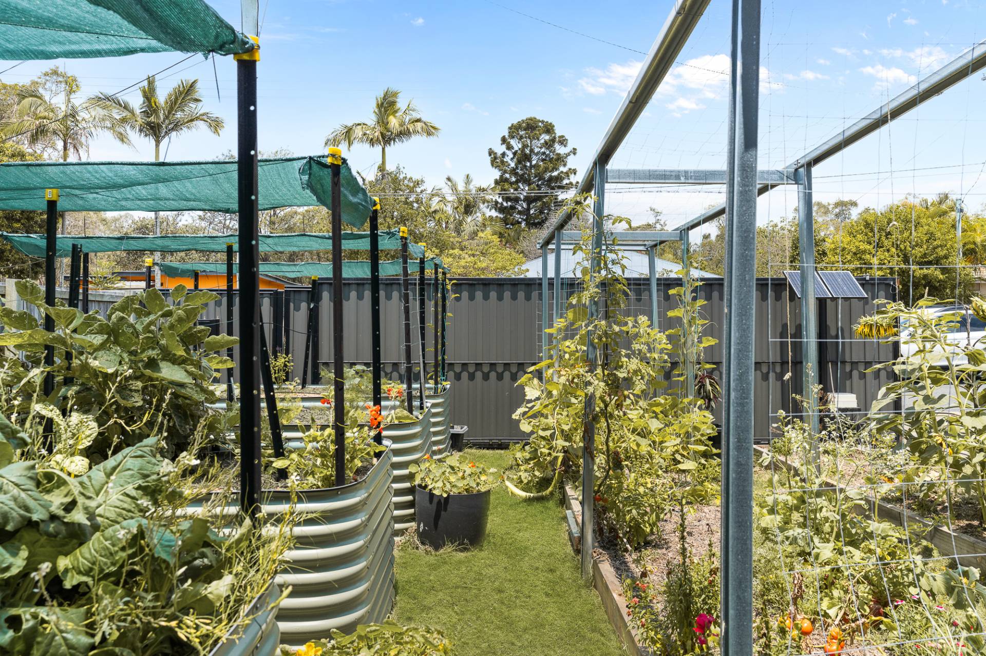The front yard has been created as a vegie garden & boasting of some beautiful sunflowers and carefully designed for those wishing to keep the vegetables coming long term.