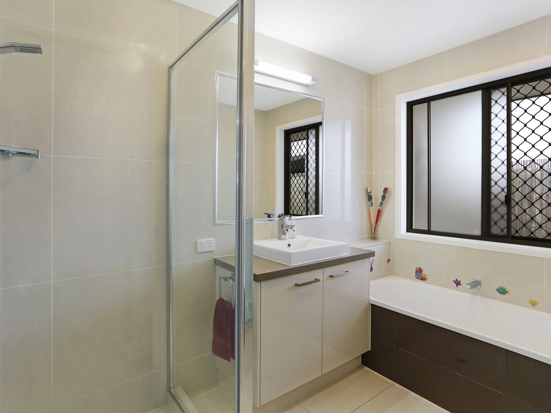 - Central main bathroom with separate shower and bath