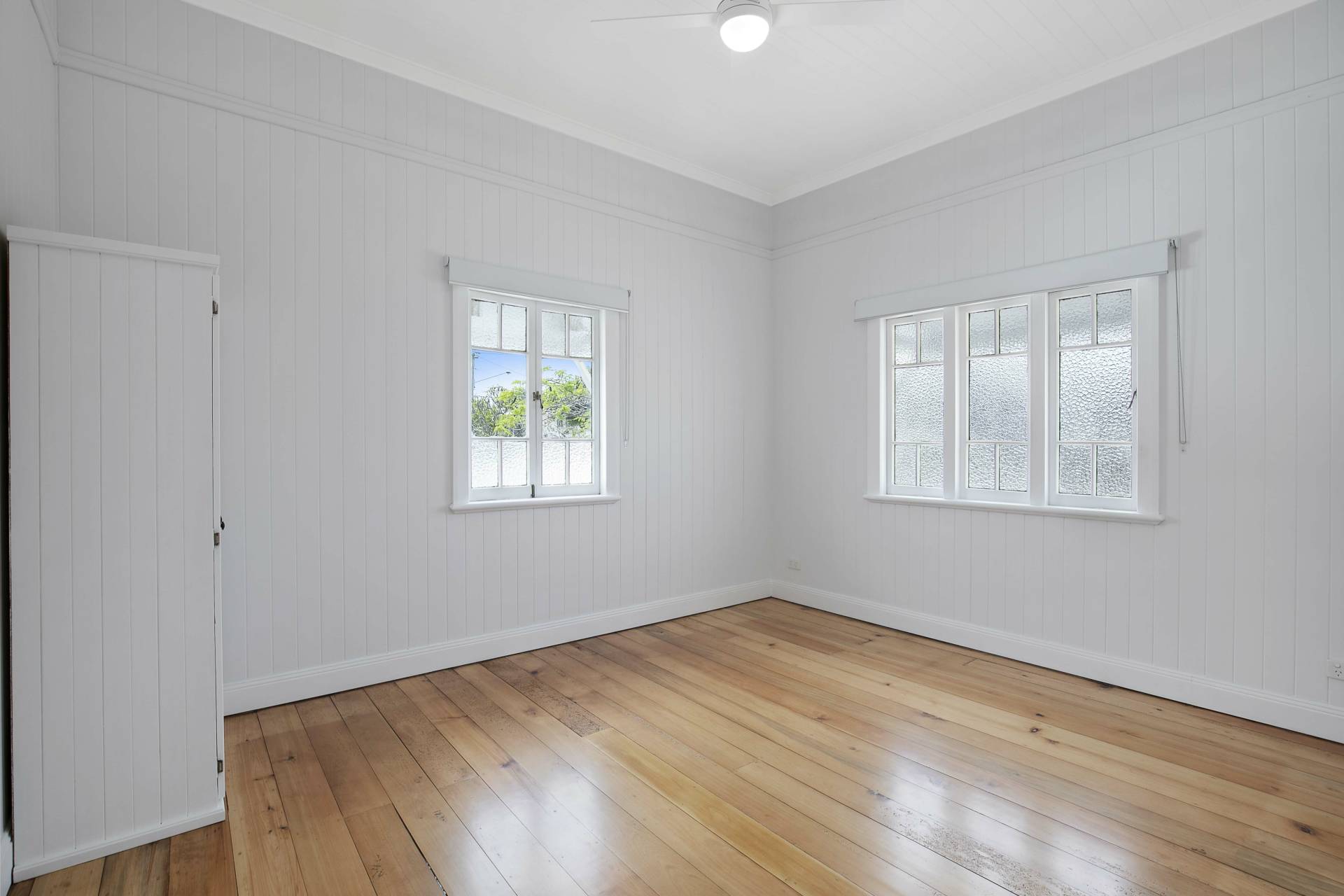 -        3 good sized bedrooms with built-ins & ceiling fans