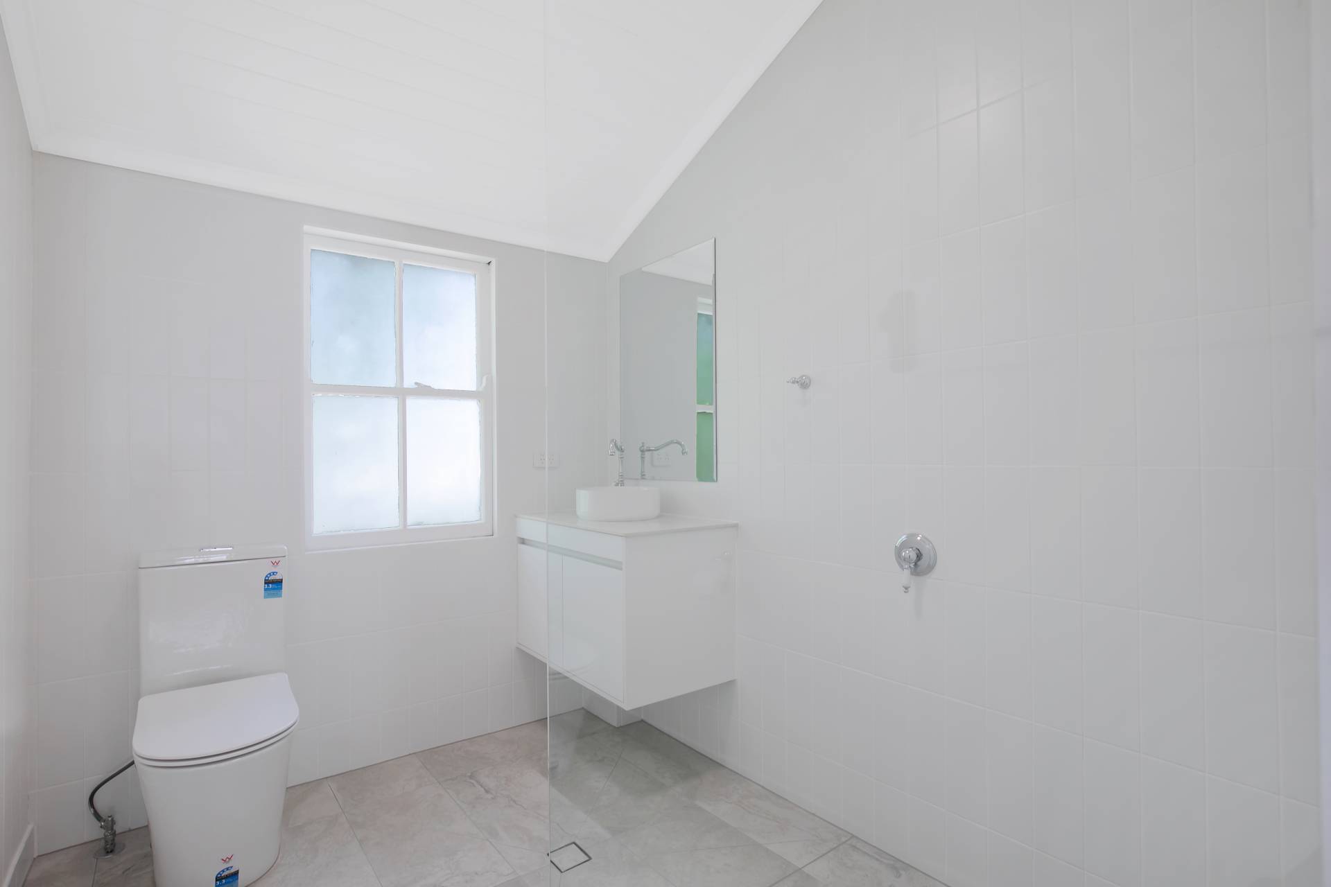 -        Ultra-modern bathroom with supersized shower