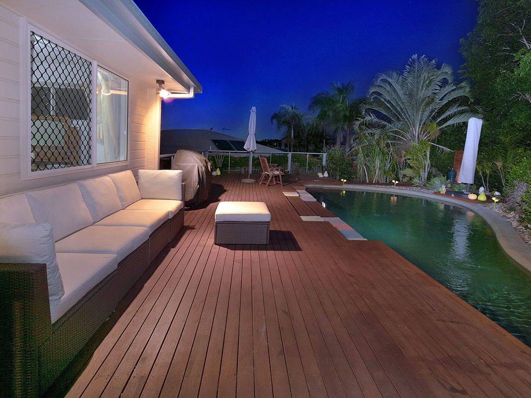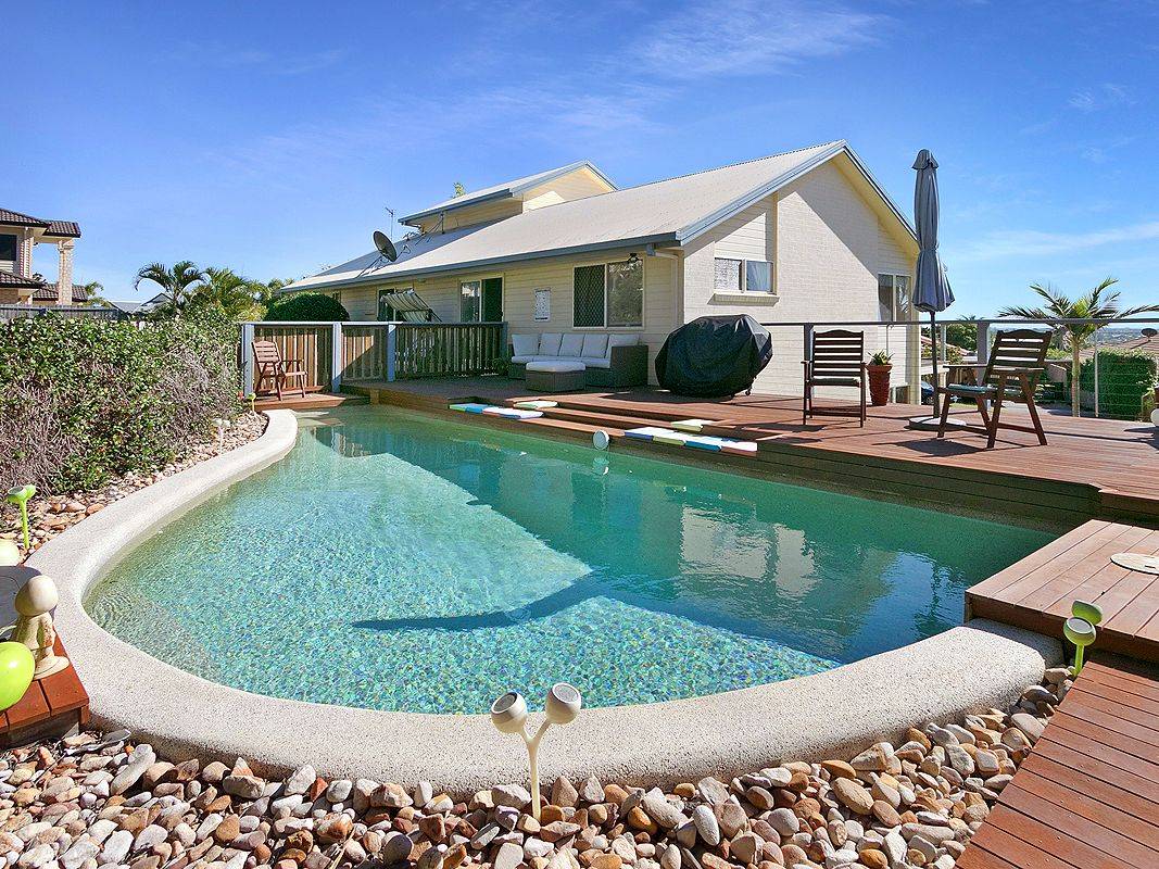 There is a private lagoon-style salt water inground pool in a tropical setting with sea views from the deck, adjoining the extensive backyard, plenty of room for children and pets to play, and side access for your boat or caravan.